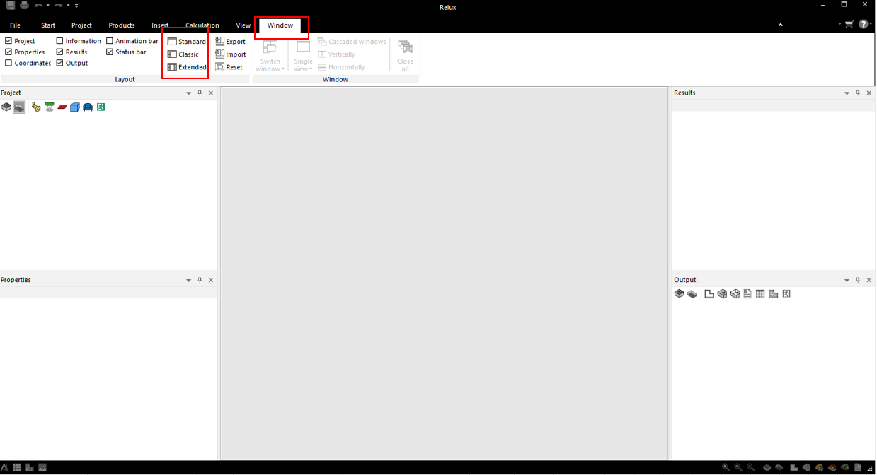 ReluxDesktop 프로그램 설치 후 처음 시작하면 Relux 프로그램 인터페이스의 기본 디스플레이 설정을 보여준다.